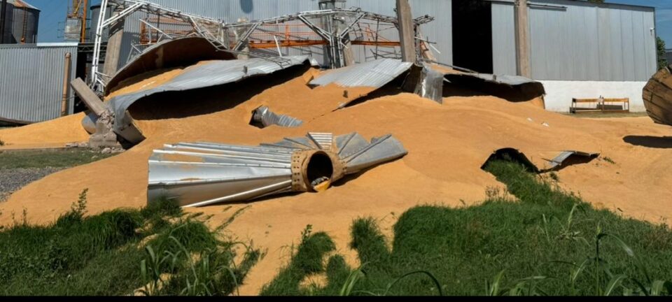 Las imágenes muestran la magnitud de los daños: los hilos aéreos, normalmente utilizados para el almacenamiento y transporte de materiales, yacen destrozados en el suelo, con la soja esparcida por el área. Aún se está evaluando el costo total de los daños y se espera un informe completo en los próximos días.