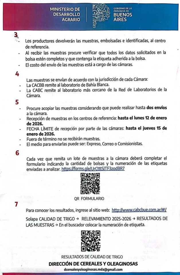 El Ministerio de Desarrollo Agrario de la Provincia de Buenos Aires (MDA), en convenio con la Cámara Arbitral de Cereales de Bahía Blanca (CACBB) y la Cámara Arbitral de la Bolsa de Cereales (CABC), lleva adelante el Programa de Mejoramiento y Diferenciación para la Calidad del Trigo, destinado a productores trigueros de la provincia.